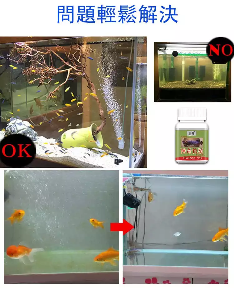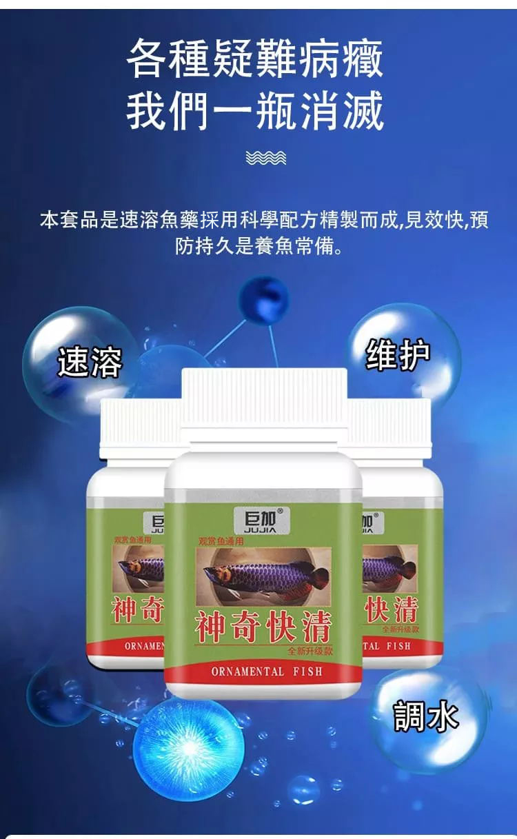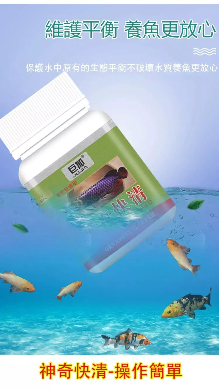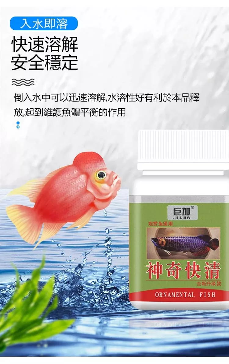 魚缸神奇快清劑為優質水質清澈處理劑,水族快清粉、魚缸速清粉、快清劑,此劑適用於任何鹹淡水觀賞魚類的水族箱以及水草缸等的水質淨化,殺菌,除腥臭,除青苔凈化水質除苔殺藻養魚用品推薦魚缸水族快清粉,死水變活水觀賞魚通用。